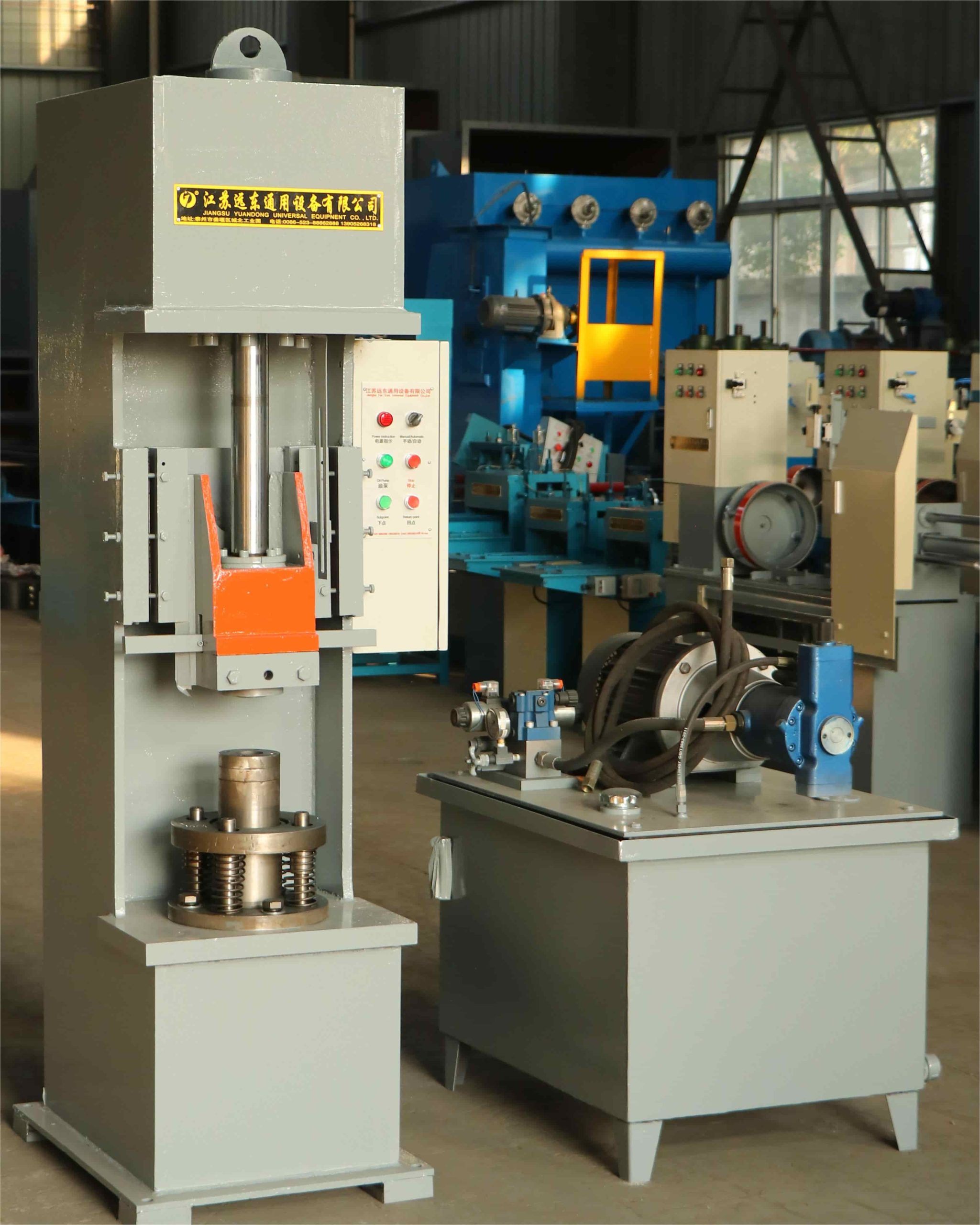 This machine composed of hydraulic power unit, mainframe, mold and electronic control parts. It can satisfy the requirements of different sizes products, compact structure, stable property. It can punch single hole or double holes. It has advantages of high punching speed, high work efficiency, accurate positioning, safe and reliable etc…One person can operate two sets machines, it's the ideal machine for LPG cylinder manufacturing.