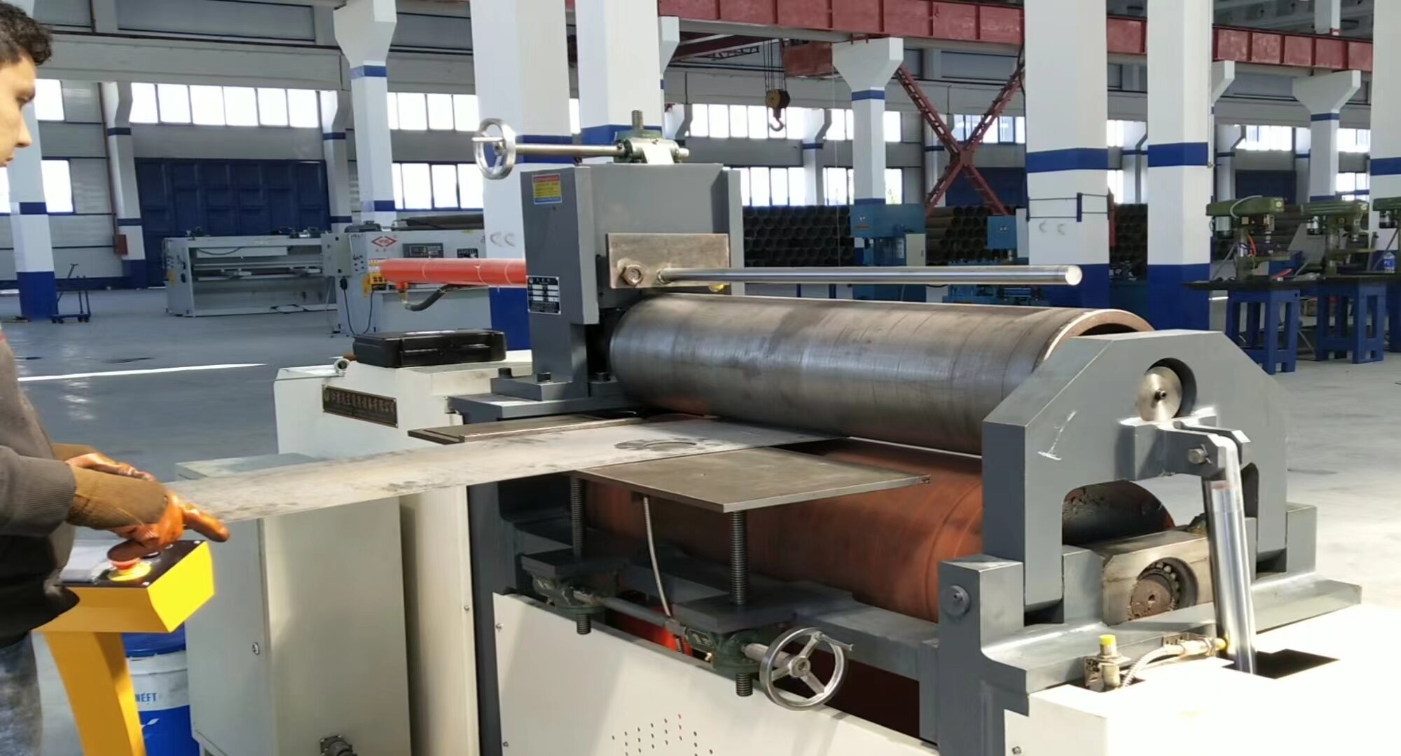 5.1. Feeding: The rectangular steel plates processed in the previous step (such as cutting, marking) are fed into the space between the two rolls through the steel plate support frame.