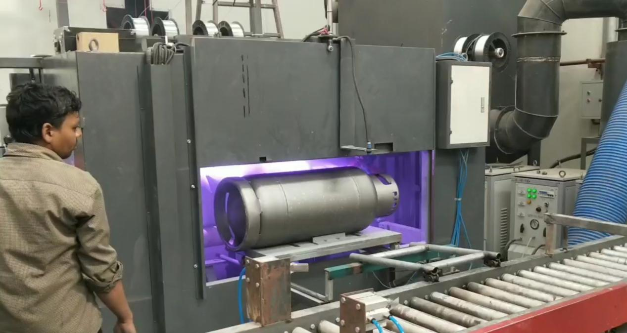 The zinc spraying wire is composed of arc zinc spraying machine, spray gun automatic mechanism, workpiece automatic transfer and rotation variable speed mechanism, spray room, vacuum cleaner, electric control and so on. Specially used for spraying zinc on the surface of LPG cylinders. A process in which the melted metal zinc wire is atomized by high-speed air flow and sprayed to the workpiece surface at high speed to form a coating by using arc as a heat source.