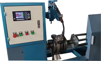 The welding and idle speed of the equipment is controlled by frequency conversion or servo speed to achieve high and low speed conversion. The arc start/break of the welding torch is linked with slow and fast rotation. The automatic welding of the circular steel pipe and the piece of the cylinder shield is realized by using the Lincoln MAG pulse power supply. The equipment has the advantages of fast welding speed, beautiful weld forming, no splash, stable and reliable quality, and is an ideal equipment for producing steel cylinders.