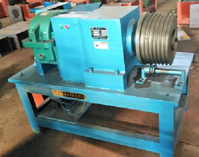 The device moves with two rows of semi-arc round wheels relative to each other, pressing the round tube to move forward, and using the adjustable guide wheel, the round tube forms a ring with a certain diameter. Finally, using cutting equipment, the rolled side-by-side rings are cut into individual rings. It is used as a handle for steel cylinders.
